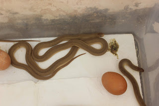Are harmless, non venomous snakes that feed on only eggs. They are specialised egg-eaters. They swallow eggs wholly, spines in the neck break the eggs, the content is swallowed and the shell spat out. From old text, Ghana supposedly has about four egg-eating snake species. I have confirmed three so far. Two shown here from the Northern savannah part of Ghana and one from the Atewa forest (picture later). The D. Gansi appears to be the most commonest as i have handled over 30 so far within a 10 year period and only two of the D. scabra and only one of the D. fasciata? (from the forest)